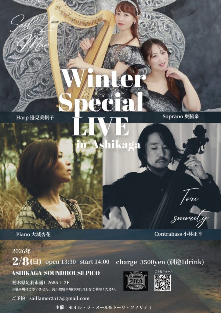 ユニット名のSail La Merは造語で、「海への出航、帆を広げ海原を行こう」という想いを込めて名付けました。ハープと歌声に包まれて、優雅な船旅へ…私たちと出航しませんか